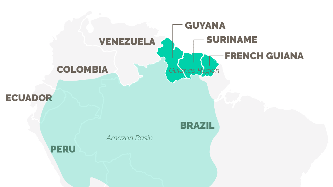 From an ecological standpoint, the Guianas region is mostly covered in rainforest that is part of the Amazon. However, it is geographically separate from the Amazon basin by a ridge of enormous rocks that define this region. Being lightly populated countries, the rainforest in the Guianas region is largely untouched, making it an amazing place to find unique wildlife and plants in a largely undeveloped environment.